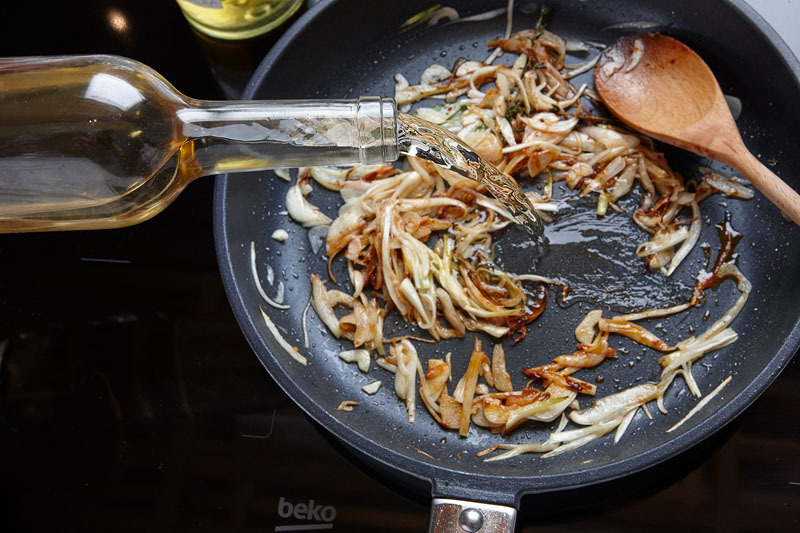 3. Se vierten el vino y el vinagre y se hierve un par de minutos