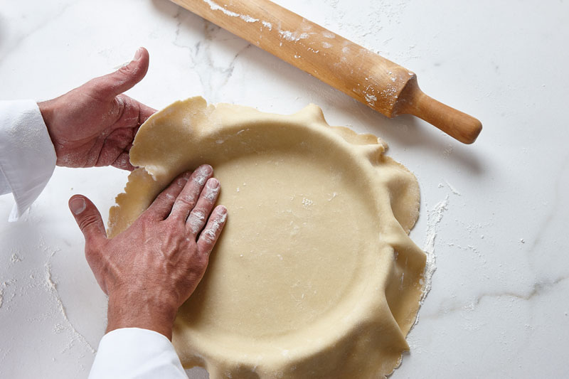 lo calentamos a 180 ºC. Recortamos los bordes de la masa, pinchamos el