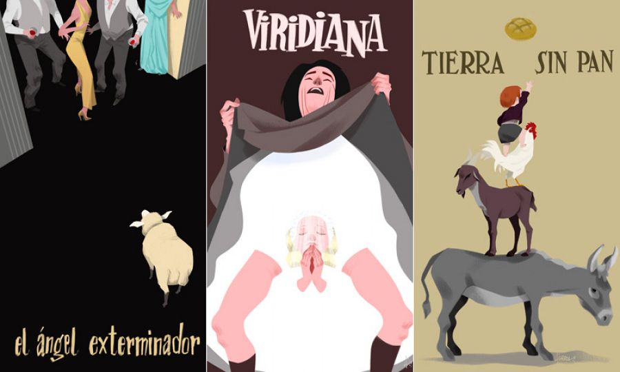 Los carteles que José Luis Ágreda ha dibujado sobre películas de Buñuel,.