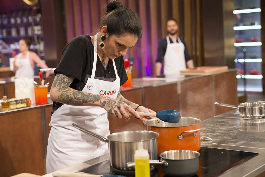 la primera prueba de la noche cocinarán por parejas, relevándose en los