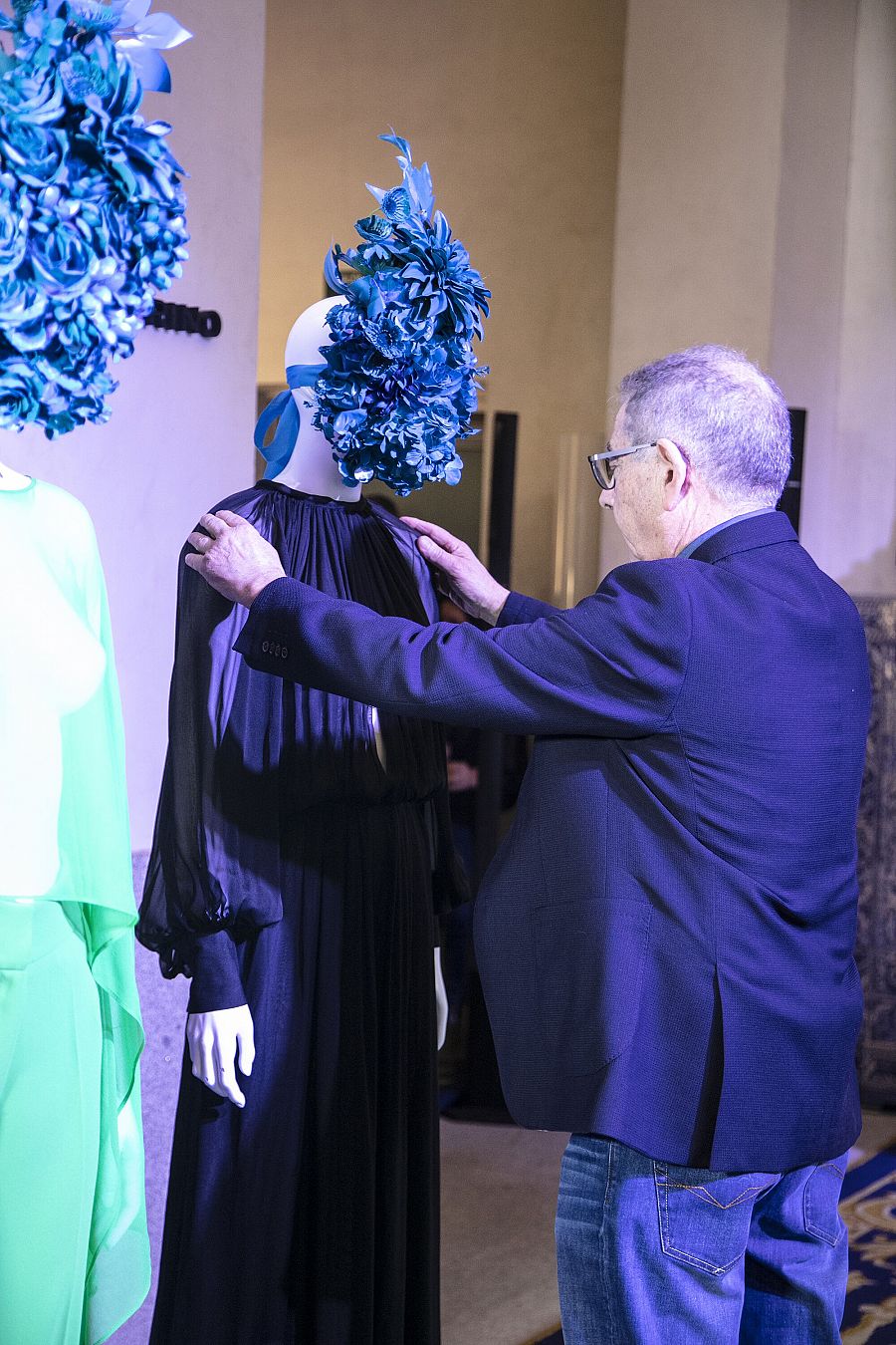 El modisto Roberto Verino colocando su instalación.