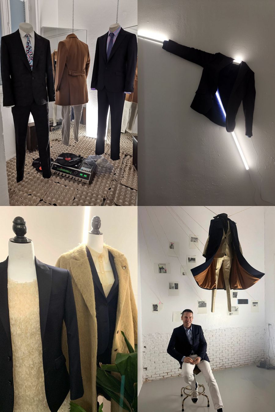 trabajo, de comunicar. Las prendas descansan en maniquíes, en una pared,
