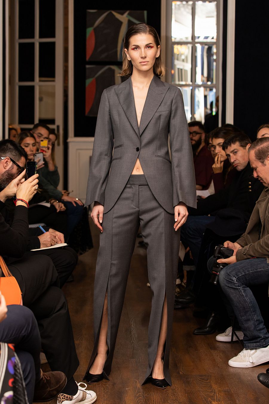 Hay muchas piezas que no son lo que parecen, jugando a engañar al ojo con patrones muy bien conseguidos. Los pantalones se abren al caminar con tajos que aportan fluidez y