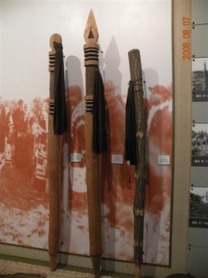Entre las armas utilizadas para la caza resaltan en los museos que hemos visitado los cuchillos, los lazos, las lanzas y los arcos y flechas (envenenadas), si bien también contaban con ballestas y un gran número de trampas que les permitían cazar aves, zorros e incluso osos.
