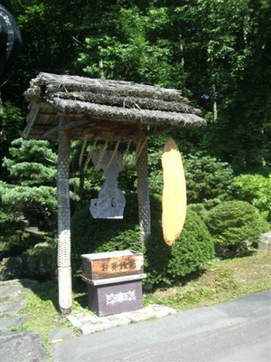En el hogar siempre hay una rama de tres brazos, sobre la que se coloca una especie de vieira, y otra rama que ha sido especialmente tratada, rasgándole la corteza y por la que, según creen, bajarán los espíritus. A ambas, junto al fuego del hogar, se les ofrecerá el sake, o el pescado, o cualquier otra vianda antes que a uno mismo.