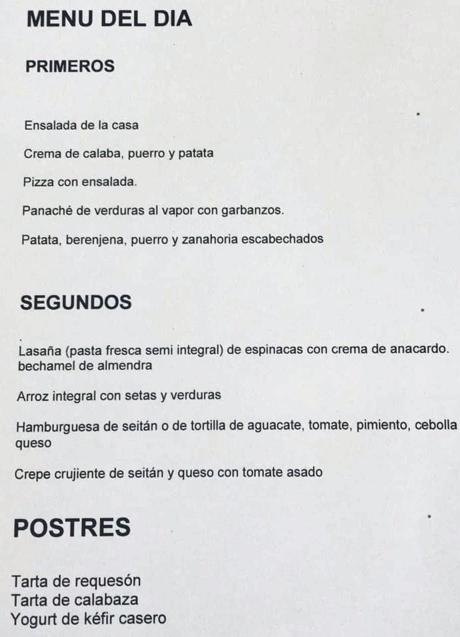 La variedad predomina en su carta, desde l o más tradicional como una crema de calabaza con puerro y patata o un arroz integral con setas y verduras pasando por sus platos estrella como la lasaña de espinacas con crema de anacardo y bechamel de almendra o la hamburguesa de seitán o de tortilla de aguacate, hasta llegar a las propuestas más innovadoras como unas lentejas con alga o un panaché de verduras con garbanzos.