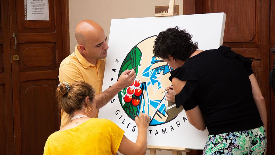 La involucración de personas en la concepción y la construcción de estos proyectos genera un lazo de pertenencia entre ellas y la obra, que funciona como un fuerte vínculo identitario. También algunos de los proyectos de arte participativo de PSJM han estado enfocados en la búsqueda de símbolos de identidad para comunidades vecinales, como Identidad vecinal (2022-2024), donde se crearon, a partir de un proceso participativo, los logotipos de 23 asociaciones vecinales de diferentes barrios de Gran Canaria. En la misma línea trabajaron Luna Bengoechea y Acaymo S. Cuesta con vecinas y vecinos del barrio de Guanarteme para realizar el mural-mosaico Homenaje a Mara González (2016).