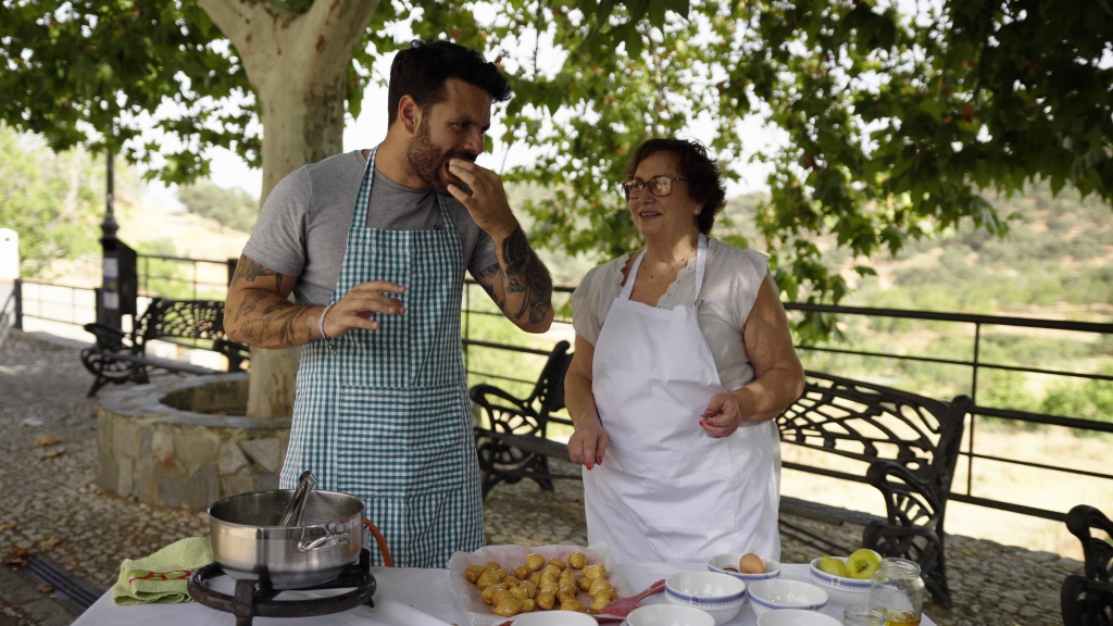 El conductor de “Tierra de Sabores”, Bosco Benítez, antes de preparar las recetas junto a Loli y Raquel, visitará un huerto con los tomates más sabrosos que haya podido probar, descubrirá que aparte del cerdo ibérico, en estas tierras pasta el mejor ganado vacuno, y probará los sencillos pero espectaculares dulces de este rincón de la sierra.